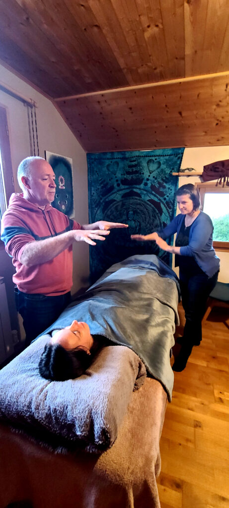 Ces soins sont souvent pratiqués avec Julie Ribeiro, doula, praticienne en soins énergétiques et infirmière de formation.